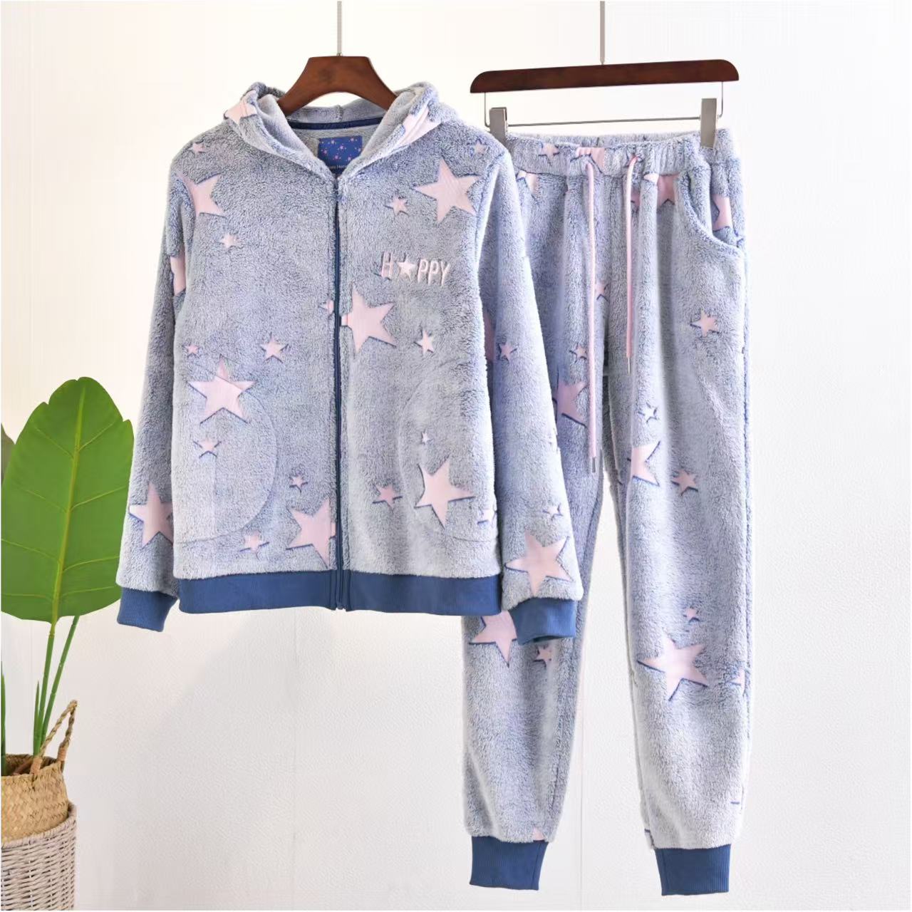 Принт со звездами придает нотку стиля, а классический пижамный крой с ребристыми деталями создает аккуратный и удобный вид, подходящий для домашней одежды.